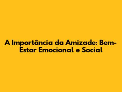Amizade: Impacto No Bem-Estar Emocional E Social
