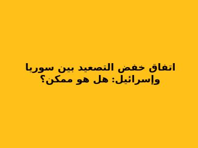 يشكل اتفاق خفض التصعيد بين سوريا وإسرائيل موضوعًا بالغ الأهمية في ظل التوترات المستمرة في المنطقة. هذا المقال سيتناول فرص وتحديات التوصل إلى مثل هذا الاتفاق، بالإضافة إلى العوامل المؤثرة فيه، والأطراف المعنية، والتداعيات المحتملة على الاستقرار الإقليمي. القضية معقدة، ولكن فهمها ضروري لفهم مستقبل المنطقة.